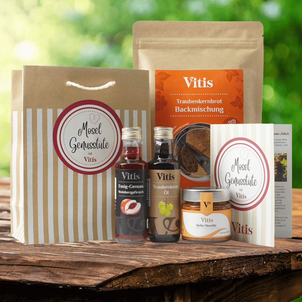 Für alle, die gerne genießen oder ein besonderes Geschenk suchen, empfehlen wir unsere liebevoll zusammengestellten Präsente: die Mosel Genusstüte und die Mosel Winzertüte. Beide Tüten vereinen ausgewählte Spezialitäten und bringen den Geschmack der Mosel direkt zu dir nach Hause.
