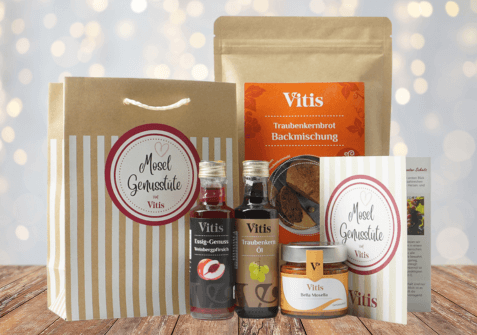 Überrasche deine Liebsten mit der Mosel Genusstüte von Vitis und zaubere ein Lächeln auf ihre Gesichter!