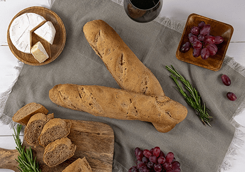 Traubenkernmehl hat einen sehr starken Geschmack und kann das Aroma anderer Zutaten in einem Rezept überwältigen. Aus diesem Grund sollte man es sparsam verwenden und es mit anderen Mehlen mischen, um das Aroma auszugleichen. Um die typischen Eigenschaften eines französischen Baguettes beizubehalten, haben wir deshalb nur eine sehr geringe Menge Traubenkernmehl verwendet. So haben wir eine ganz besondere Baguette-Backmischung kreiert.